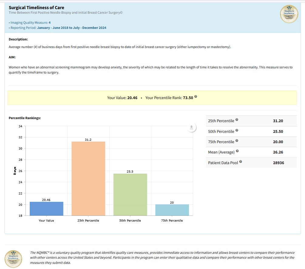 - Timeliness of Care – Time Between Needle Biopsy (or first surgical contact) and Initial Breast Cancer Surgery